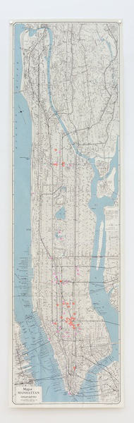 KMQ: …who is also performative! There is a sense of participation in your work and we can speak directly about your practice of conducting walking tours in the urban environment or suggestively of your map of Manhattan, on which you isolate gay cruising sites and Communist Party meeting sites of the McCarthy era. Are your walking tours a creation of a counter-monument?