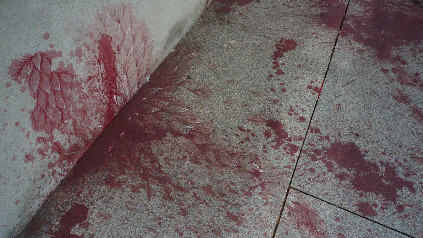 So Imran Qureshi (b. 1972 Hyderabad, Pakistan) creates an image of immemorial dying – And How Many Rains Must Fall Before the Stains Are Washed Clean – covering the rooftop tiles of the Metropolitan Museum of Art. In an intervention of minimal means, he assuages an emotional outpouring of abstract expressionist torment with gentle brush strokes gleaned from traditional miniature painting, coloring a remembrance to the aftermath of bombings in Lahore, so near to where he lives and works in Pakistan…that might also be Boston, Baghdad, or Homs. Visitors use the plaza as they always do: to take in the sun, sit in conversation, or view the extensive vista; some pause with curiosity to question the subtle transition of blood stains into the shape and motion of flora, their shadows the anonymous overlay of contradictory presence. This strange dichotomy between terror and normalcy – a kind of “life moves on” sensibility to the environment – is acknowledged when visitors cluster around the periphery of an otherwise empty plaza. The obligation to strike a path across the field of art and memory feels both privilege and aggression.