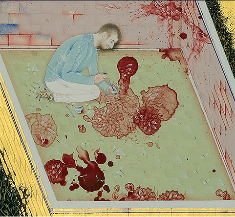 Imran Qureshi, And How Many Rains Must Fall Before the Stains Are Washed Clean, 2013. Installed at The Metropolitan Museum of Art’s Roof Garden, New York, 2013. Detail. Photograph © 2013 Kathleen MacQueen.