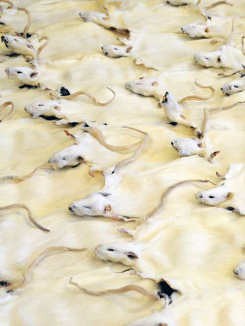 Elpida Hadzi-Vasileva, Silentio Pathologia for the 55th Venice Biennale, 2013, detail of rat skins. Photo from the artist’s blog.