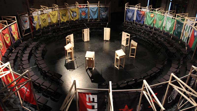 Cesarco’s aesthetic honesty is refreshing, offering its own resistance to an increasing one-ups-man-ship of the spectacular so prevalent at the Biennale. Jonas Staal works differently. While Cesarco’s politics rest in the subtle vagaries of the language of intimacy, Staal’s strive to shape an open and coherent public debate within a notion of fundamental democracy. In the Berlin Biennial of 2012 he created a two-day New World Summit and invited participants who are excluded from the various economic and political summits sponsored by “leading” nations of the post-1989 “new world order” and post-9/11 “globalization” projects. In an effort to strip discourse of its hegemonic certainty to reach a discussion of basic human necessity, Staal offered speakers from the margins of power relations the center stage of debate.