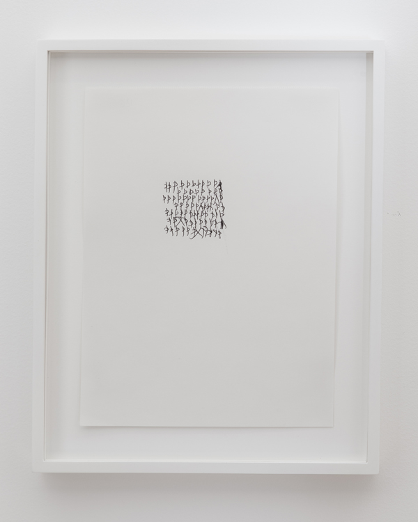 Caroline Bergvall, BLOCK A616 / 12, 2012-2013, india ink on sketching paper, 11 x 8 1/4 inches. Courtesy the artist and Callicoon Fine Arts, NY.