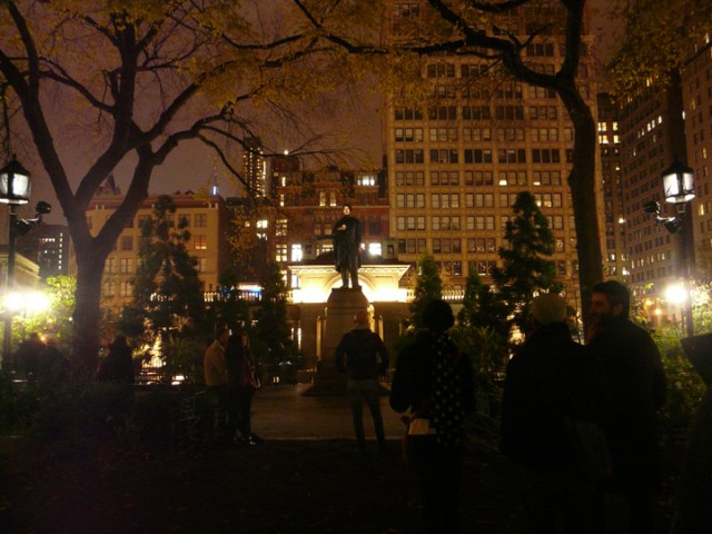 Krzysztof Wodiczko believes in the power of art to heal, transform, and enlighten. For this artist, cultural practices provide the means to embolden voices muted through marginalization and alienation. To coincide with Veteran’s Day, fourteen soldiers and family members recuperate their stories and reconcile troubled pasts in testimonies projected onto Henry Kirke Brown’s statue of Abraham Lincoln, which has stood silent vigil in Union Square’s north end since 1870. Through digital proxy the veterans assume Lincoln’s authority as a statesman and orator to gain standing as viable public citizens. [Read more…]